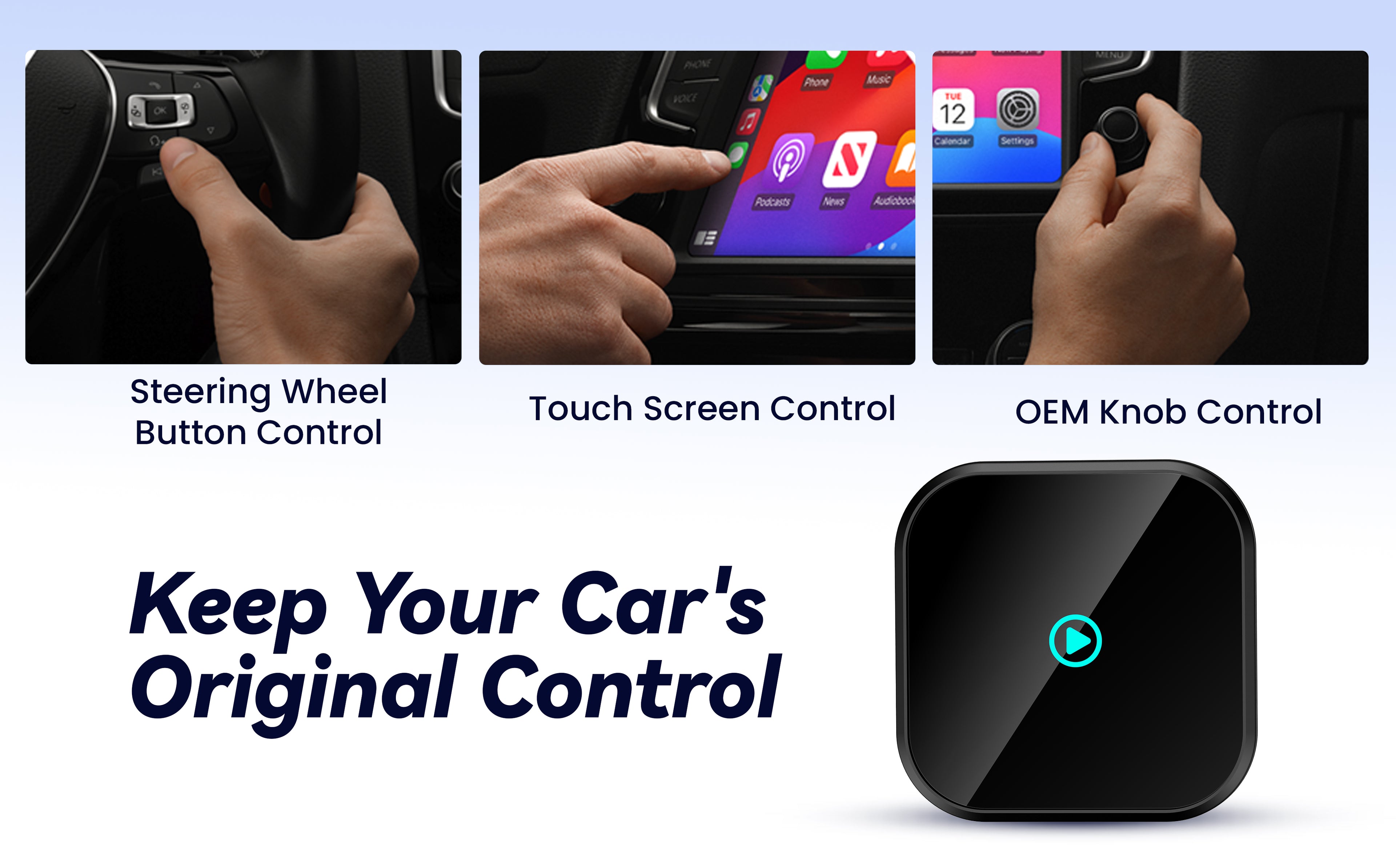 The ultra-compact and sleek wireless CarPlay adapter fits almost flush in your car’s USB port, blending seamlessly into your vehicle’s interior for a clean, minimalist look without clutter. With our upgraded, nearly invisible adapter, effortlessly add wireless functionality to your car's original Apple CarPlay and enjoy wireless access to CarPlay features like music, maps, calls, and more.
