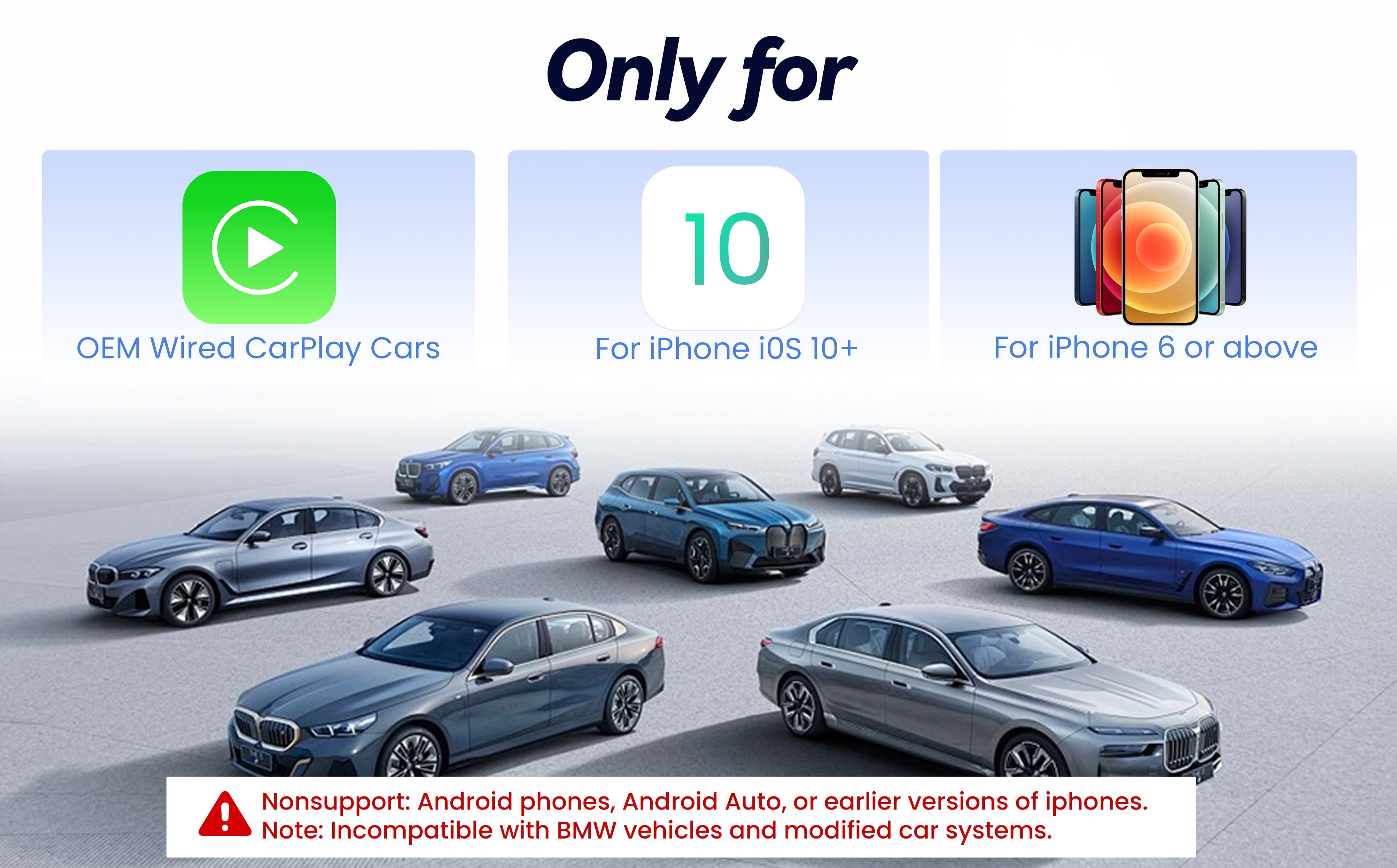 Convert Wired to Wireless CarPlay, Plug and Play, Compatible with iPhone iOS 10+& Cars from 2016.
