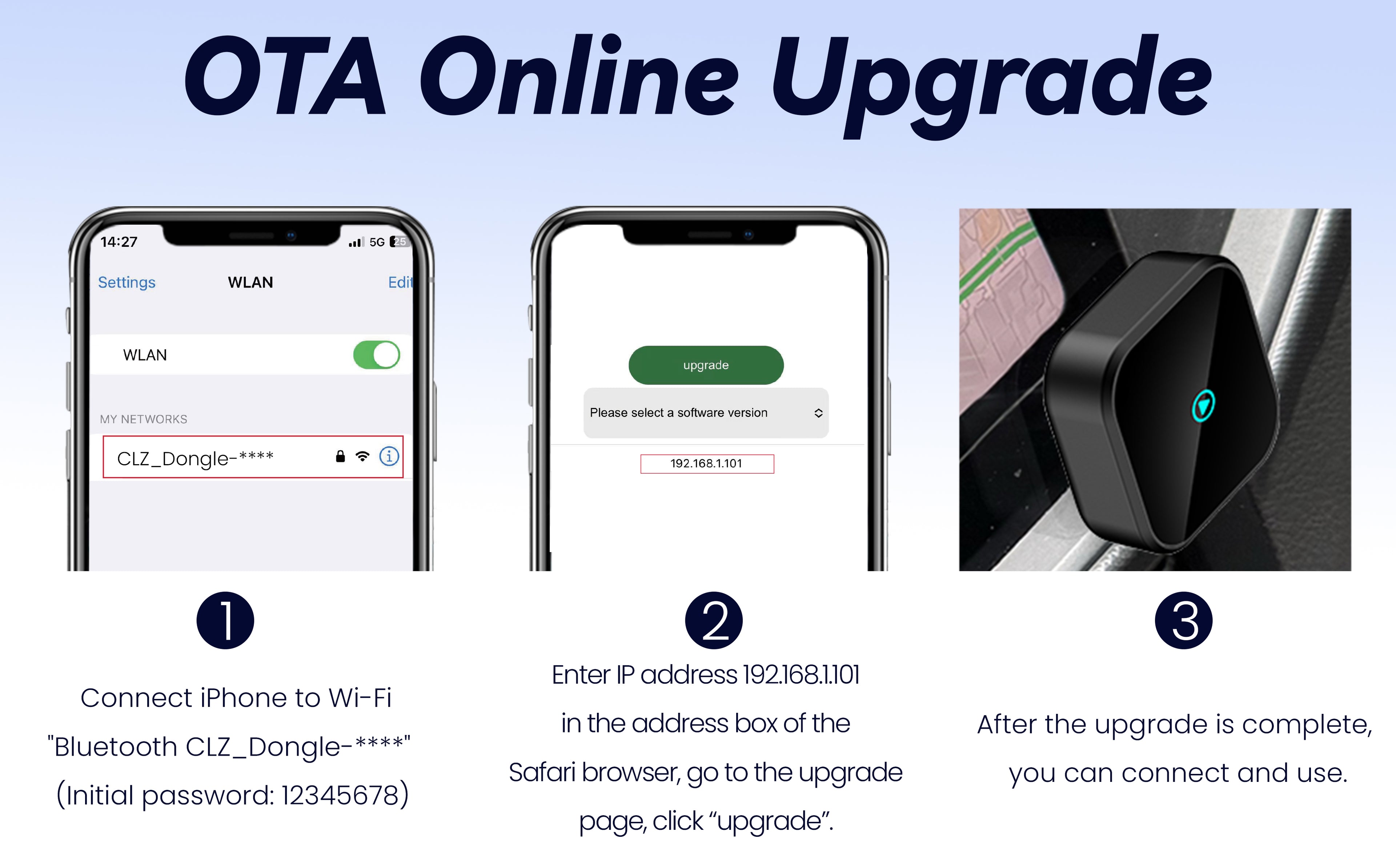 ⚡ Easy Plug & Play – Plug it in once, pair via Bluetooth & WiFi, and it auto-connects every time you drive.