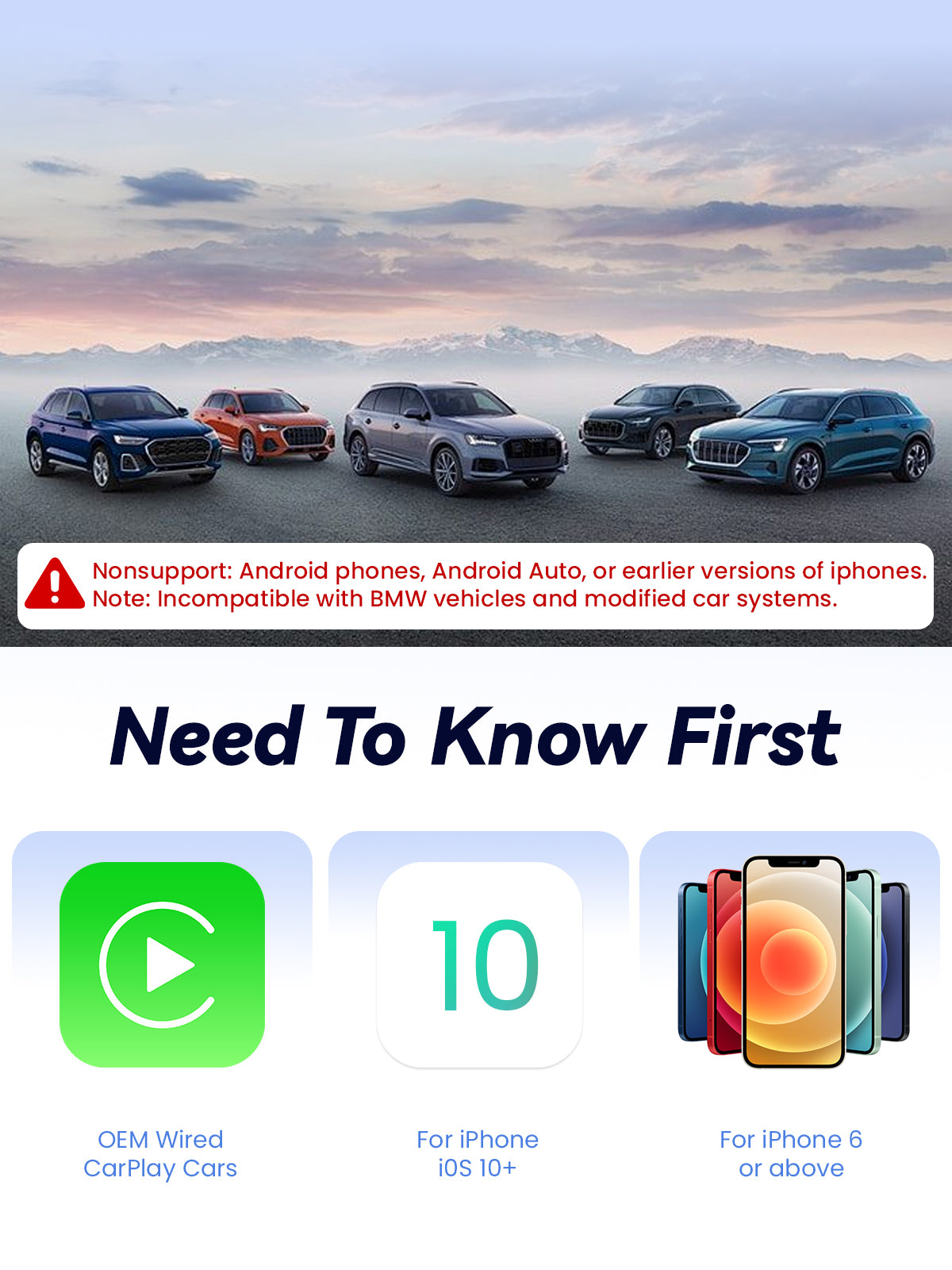 📱 Broad Compatibility – Works with 98% of cars with factory-wired CarPlay (2016+). Supports iPhone 6 or newer, iOS 10+. Includes USB-A & USB-C.