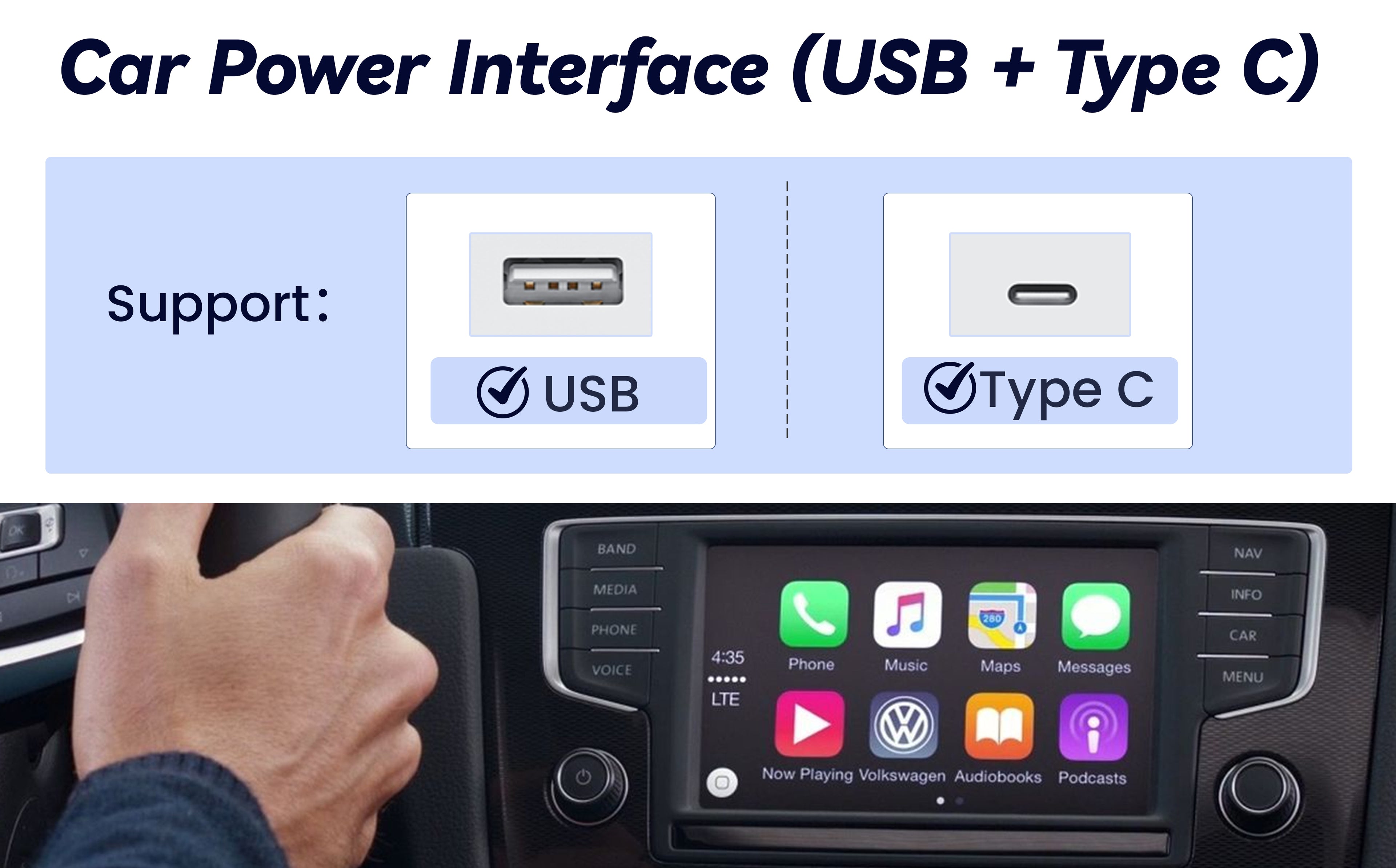 Mini USB Design for Cars with Built-in Wired Apple CarPlay.